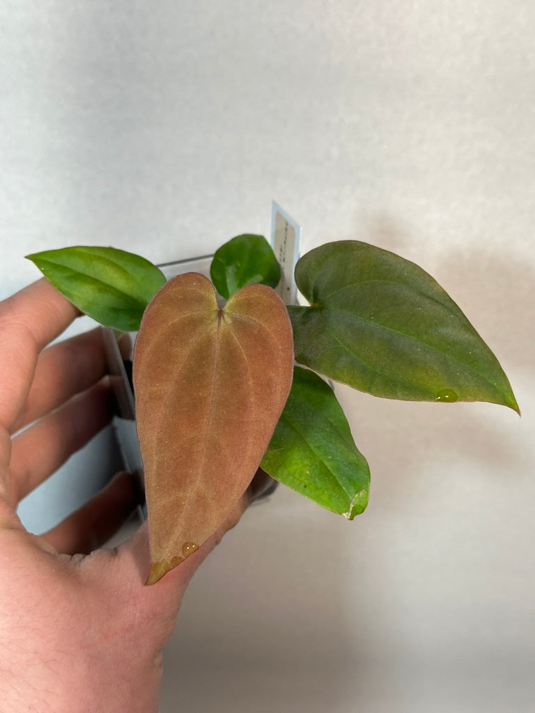 Selfed Anthurium is a topic that routinely comes up in discussion within the collectors' community with much controversy. While some well-respected collectors maintain that selfing a plant will result in overall weaker offspring or inferior genetics, many well-versed growers have also sought out and grow selfed specimens in our collections, as it is not universally the case that a selfed seed/seedling will result in weaker or subordinate plants. If your seed, given amiable conditions of high humidity and warm temperatures (70º+), fails to grow or exhibits detrimental mutations upon beginning tissue growth, please reach out for the option of replacement.